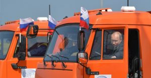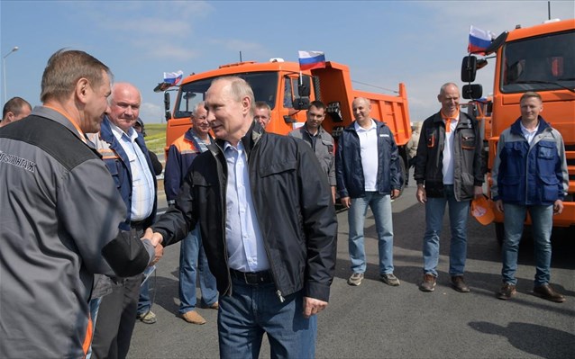 Ο Πούτιν εγκαινίασε τη γέφυρα οδηγώντας ο ίδιος ένα φορτηγό.