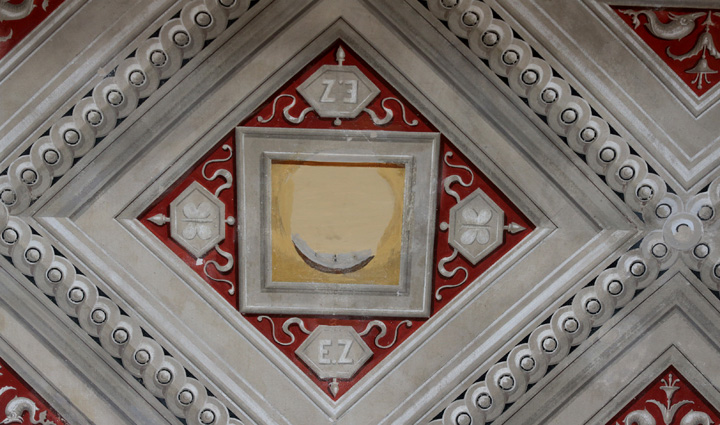 Στην οροφή του υπνοδωματίου της γυναίκας του το μονόγραμμά της με τα αρχικά SEZ (Σοφία Ερνστ Τσίλερ). Περίφημες οροφογραφίες διακοσμημένες με φυτικό διάκοσμο που για χρόνια ήταν καλυμμένες με γύψινα διακοσμητικά ανάγλυφα, τα οποία είχε προσθέσει ο επόμενος ιδιοκτήτης του μεγάρου, ο Κεφαλονίτης τραπεζίτης Διονύσιος Λοβέρδος, ιδρυτής της Ιoνικής και Λαϊκής Τράπεζας. Το αγόρασε σε πληστηριασμό το 1912 και το χρησιμοποίησε ως κατοικία του προχωρώντας σε προσθήκες και προεκτάσεις στο αρχικό κτίριο.
