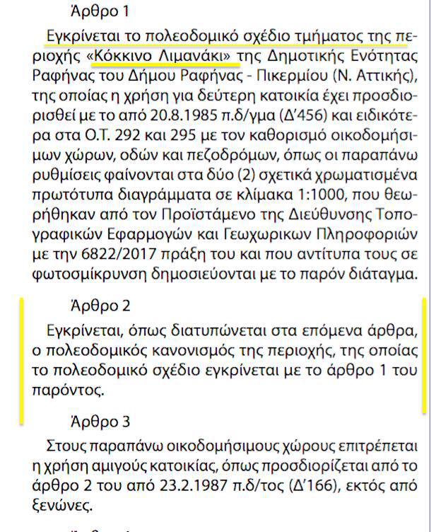 Κι όμως η κυβέρνηση έχει υπογράψει το πολεοδομικό σχέδιο για το Κόκκινο Λιμανάκι, την περιοχή που σημειώθηκε η μία πράξη της τραγωδίας των φονικών πυρκαγιών.