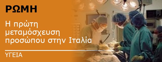 Η επεμβαση για τη μεταμόσχευση προσώπου σε μια γυναίκα διήρκησε 20 ώρες. Είναι η πρώτη στην Ιταλία και πραγματοποιήθηκε στο νοσοκομείο Sant’Andrea στη Ρώμη. Η χειρουργική επέμβαση, που έγινε σε μια γυναίκα 49 ετών που έπασχε από νευροϊνωμάτωση τύπου Ι (μια γενετική ασθένεια που προκαλεί σοβαρές εκδηλώσεις στο δέρμα, τα μάτια και το νευρικό σύστημα), κατέστη δυνατή χάρη σε ένα δότη 21 ετών.