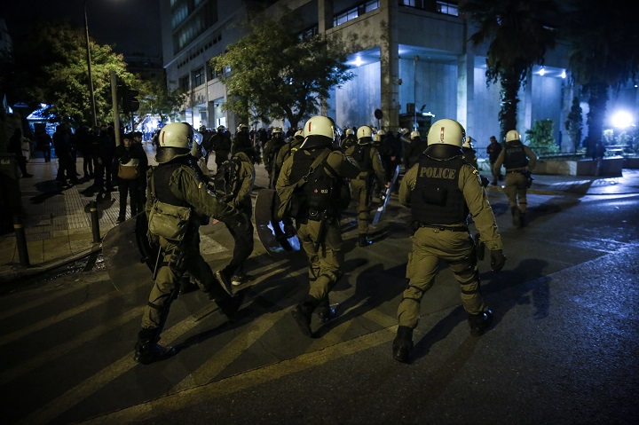 Οι αστυνομικές δυνάμεις «απάντησαν» με χειροβομβίδες κρότου λάμψης για να απομακρύνουν τους ταραξίες, οι οποίοι κατευθύνονται αυτή την ώρα προς την πλατεία Εξαρχείων.