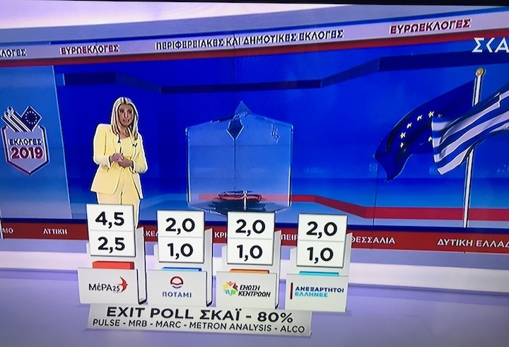 Η εκτίμηση της ΕΡΤ μέσω της Καπα Research για το αποτέλεσμα των ευρωεκλογών, στο 80% όσων μετείχαν έχει ως εξής: