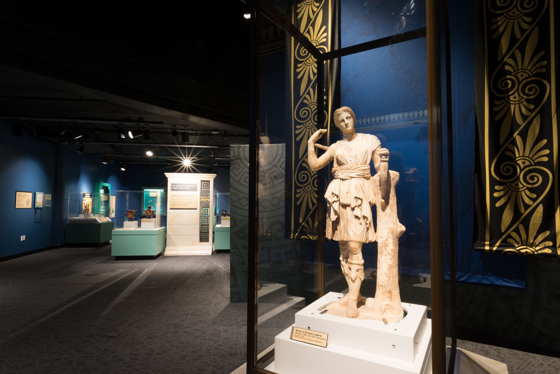 «Σε μια έκταση περίπου 800 τ.μ., παρουσιάζονται με τρόπο εύληπτο και ευρηματικό στο αμερικανικό κοινό, και κυρίως στα παιδιά και τις οικογένειές τους, η πορεία και τα επιτεύγματα του αρχαίου ελληνικού πολιτισμού, ενός από τους σημαντικότερους πολιτισμούς του κόσμου μέσα από έναν εντυπωσιακό πλούτο 150 αρχαίων έργων από είκοσι σημαντικά αρχαιολογικά μουσεία της Ελλάδας», σημειώνει το ΥΠΠΟΑ στην ανακοίνωσή του. Επίσης προσθέτει ότι «ένα από τα πλέον εμβληματικά εκθέματα της έκθεσης είναι το σχεδόν ακέραιο άγαλμα της Αρτέμιδος, από τα καλύτερα σωζόμενα αντίγραφα στον τύπο της “Λαφρίας” ή “Κυνηγέτιδος” του Αρχαιολογικού Μουσείου Μεσσήνης. Μεταξύ των πιο εντυπωσιακών αρχαιοτήτων”, συνεχίζει το ΥΠΠΟΑ, “περιλαμβάνονται το άγαλμα του Διονύσου από το Αρχαιολογικό Μουσείο Θεσσαλονίκης, το χάλκινο άγαλμα εφήβου από την Κύθνο της Εφορείας Εναλίων Αρχαιοτήτων, το άγαλμα Κόρης από το Μουσείο Ακρόπολης, το ψηφιδωτό με παράσταση Αφροδίτης από το Αρχαιολογικό Μουσείο Πάτρας και ο βωμός των δώδεκα θεών από το Εθνικό Αρχαιολογικό Μουσείο».