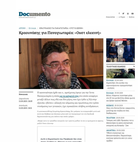 Σύμφωνα με πληροφορίες, μετά από ώρα ο κ. Κραουνάκης έσβησε την ανάρτησή του, η οποία όμως δεν πρόλαβε να αποσυρθεί, αφού είχε αποτυπωθεί από το blog του documento.