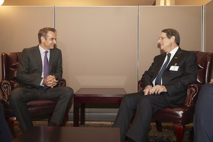 Οι τελευταίες εξελίξεις για το εθνικό ζήτημα του Κυπριακού και η αμοιβαία ενημέρωση για τις επαφές που είχαν στο πλαίσιο της 74ης Συνόδου του ΟΗΕ, βρέθηκαν στο επίκεντρο της συνάντησης που είχε ο πρωθυπουργός Κυριάκος Μητσοτάκης με τον πρόεδρο της Κυπριακής Δημοκρατίας Νίκο Αναστασιάδη.