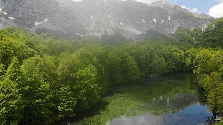 Με την ψηλότερη κορυφή του Λάκμου, την Τσουκαρέλα στα 2.295 μέτρα, πάνω από την αλπική λίμνη το τοπίο, είναι επιβλητικό.