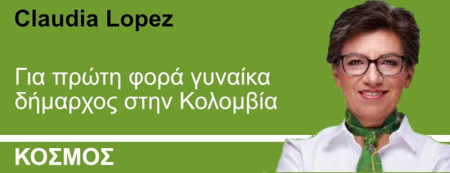 Ανοικτά ομοφυλόφιλη, εμβληματική αγωνίστρια εναντίον της διαφθοράς στην Κολομβία, η 49χρονη Κλαούντια Λόπες έγινε χθες Κυριακή η πρώτη γυναίκα στην ιστορία που εξελέγη δήμαρχος στην Μπογκοτά, την πρωτεύουσα της χώρας των Άνδεων, στις δημοτικές και περιφερειακές εκλογές οι οποίες διεξήχθησαν σε συγκριτικά ήρεμη ατμόσφαιρα, έπειτα απο μια προεκλογική εκστρατεία που αμαυρώθηκε από αιματηρά επεισόδια.