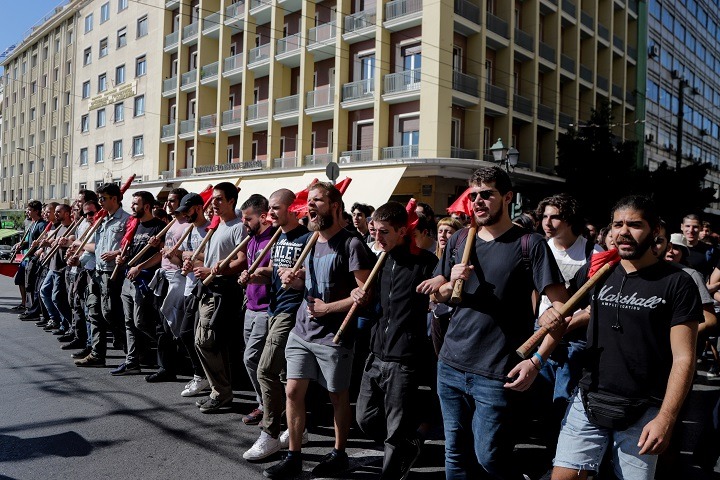 Με κεντρικό σύνθημα «διεκδικούμε δωρεάν σπουδές με δικαιώματα, ενάντια στην πολιτική ΕΕ και κυβερνήσεων ΝΔ-ΣΥΡΙΖΑ», οι διαδηλωτές συγκεντρώθηκαν νωρίτερα στα Προπύλαια και τώρα κατευθύνονται προς το Σύνταγμα.