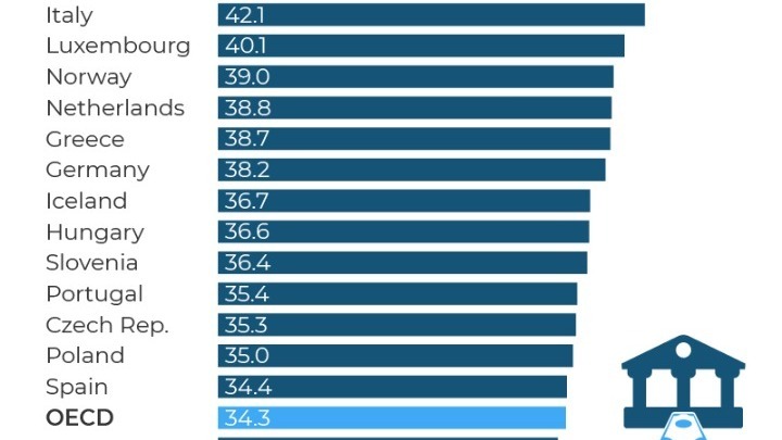 Η Ελλάδα μαζί με τη Γερμανία, την Ουγγαρία, την Ιαπωνία και την Πολωνία είναι οι χώρες του ΟΟΣΑ , όπου η συμμετοχή των ασφαλιστικών εισφορών των εργαζομένων στα συνολικά φορολογικά έσοδα είναι μεγαλύτερη από το 15%. Στην πρώτη θέση βρίσκεται η Σλοβενία, όπου το αντίστοιχο ποσοστό ανήλθε στο 20,8%. Επίσης, η Ελλάδα είναι μεταξύ των επτά χωρών του ΟΟΣΑ που τα περισσότερα έσοδα από τις εισφορές προέρχονται από τους εργαζόμενους, ενώ στις υπόλοιπες χώρες του Οργανισμού προέρχονται από τους εργοδότες.