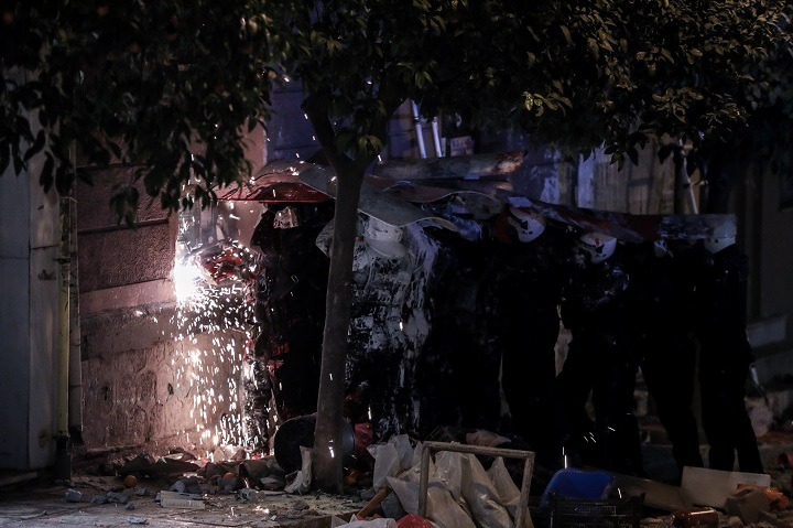 Το Σάββατο αργά το μεσημέρι ομάδες αντιεξιουσαστών κατευθύνθηκαν στα δυο σφραγισμένα κτήρια στην οδό Ματρόζου και στην οδό Παναιτωλίου όπου μερικοί από αυτούς μπήκαν σταο κτήρια τα οποία η ΕΛ.ΑΣ. είχε εκκενώσει τον περασμένο Δεκέμβριο.