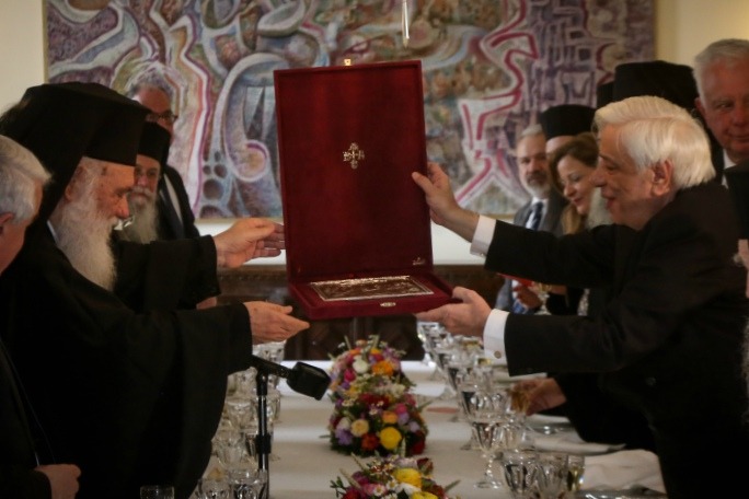 Στη συνέχεια, ο κ. Παυλόπουλος ευχαρίστησε την Θεία Πρόνοια, διότι του παρέχει την δυνατότητα να αποχαιρετίσει τον Αρχιεπίσκοπο Αθηνών και Πάσης Ελλάδος, καθώς και τα μέλη της Διαρκούς Ιεράς Συνόδου της Ορθόδοξης Εκκλησίας της Ελλάδος με την λήξη της θητείας του ως Προέδρου της Δημοκρατίας, εορτάζοντας μαζί τους, κατά την φετινή Κυριακή της Ορθοδοξίας, την Θριαμβική Εορτή της Αναστήλωσης των Ιερών Εικόνων.