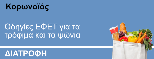 Στο πλαίσιο των προληπτικών μέτρων που έχει λάβει η κυβέρνηση για τη αποφυγή της διάδοσης του νέου κορωνοϊού SARS-CoV-2 στη χώρα, ο ΕΦΕΤ ενημερώνει τους καταναλωτές και τις επιχειρήσεις τροφίμων για τα ακόλουθα: