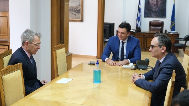 Επίσκεψη, στο υπουργείο Υγείας, που έγινε στο πλαίσιο της συνεργασίας των δύο χωρών σε θέματα ιατροτεχνολογικού εξοπλισμού και τεχνολογίας, πραγματοποίησε ο πρέσβης των ΗΠΑ, Τζέφρι Πάιατ. Ο κ. Πάιατ συζήτησε με τον υπουργό υγείας Βασίλη Κικίλια και τον υφυπουργό Β. Κοντοζαμάνη τις δυνατότητες που υπάρχουν ώστε κορυφαίες εταιρείες του χώρου να επενδύσουν στην Ελλάδα, όπως ανέφερε και στις δηλώσεις του ο υπουργός μετά το τέλος της συνάντησης.