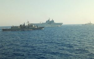 Κοινή ναυτική άσκηση με τη συμμετοχή μέσων και προσωπικού των δύο χωρών, στη θαλάσσια περιοχή της Ανατολικής Μεσογείου, συμπεριλαμβανομένης της περιοχής την οποία έχει δεσμεύσει με παράνομη NAVTEX η Τουρκία για διεξαγωγή ερευνών, πραγματοποιήθηκε σήμερα στο πλαίσιο της διαρκούς στρατιωτικής συνεργασίας Ελλάδας-Γαλλίας.