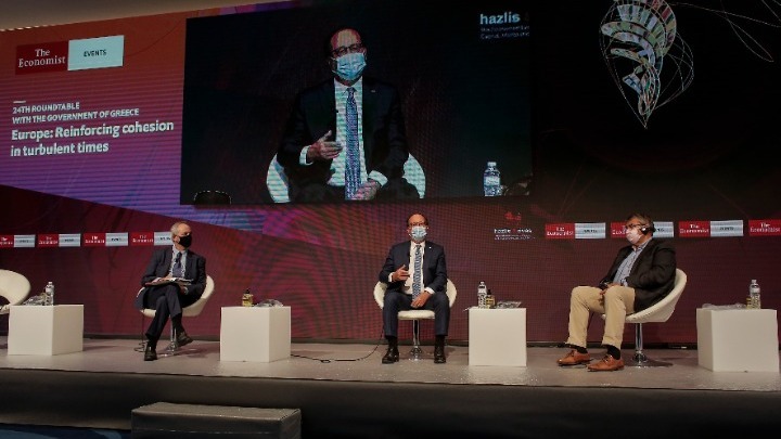 Διαφορετικές προσεγγίσεις για το πώς πρέπει η Ευρώπη να χειριστεί την Τουρκία ανέπτυξαν οι Φρανσουά Ολάντ και Ζίγκμαρ Γκάμπριελ, αναπαράγοντας κατ’ ουσίαν τις θέσεις των κυβερνήσεων των χωρών τους. Μιλώντας στο πρώτο πάνελ του Συνεδρίου του Economist, ο μεν τ. Πρόεδρος της Γαλλίας ζήτησε η Τουρκία να πληρώσει τίμημα, αφ’ ης στιγμής «έχει ηγεμονικές βλέψεις τουλάχιστον σε ένα τμήμα της ευρωπαϊκής ηπείρου», την ώρα που ο τ. αντικαγκελάριος της Γερμανίας υποστήριξε ότι οι κυρώσεις δεν αποτελούν λύση αντιπροτείνοντας τη «στρατηγική υπομονή».