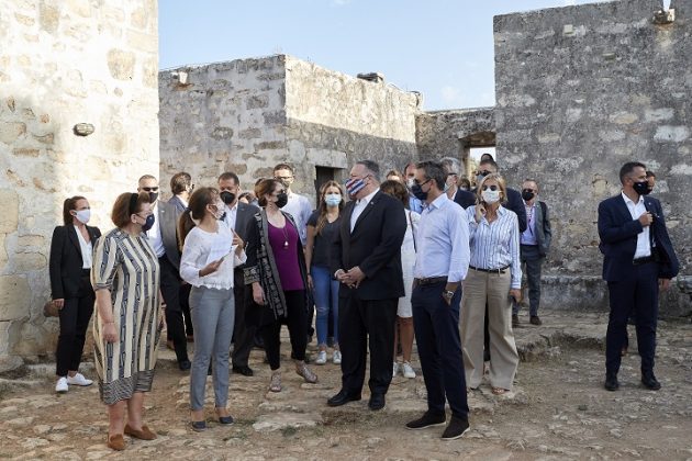 Τον αρχαιολογικό χώρο της Αρχαίας Απτέρας, στα νοτιοανατολικά του Κόλπου της Σούδας στην Κρήτη, επισκέφθηκαν το απόγευμα ο πρωθυπουργός Κυριάκος Μητσοτάκης και ο υπουργός Εξωτερικών των Ηνωμένων Πολιτειών της Αμερικής Μάικ Πομπέο, συνοδευόμενοι από τις συζύγους τους Μαρέβα Γκραμπόφσκι – Μητσοτάκη και Σούζαν Πομπέο.