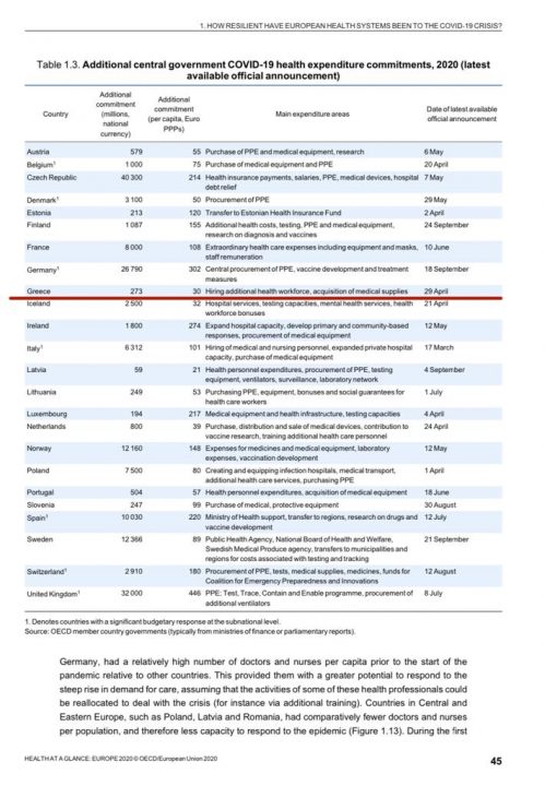 «Ο κ. Τσίπρας έχει ταυτιστεί με τα ψέματα, τα Fake News και την επιπολαιότητα» σχολίασε ο κυβερνητικός εκπρόσωπος Στέλιος Πέτσας απαντώντας σε δήλωση του αρχηγού της αξιωματικής αντιπολίτευσης για τις δαπάνες στην υγεία. Σημείωσε ότι «σε σημερινή δήλωσή του, ο κ. Τσίπρας, αναφέρεται σε «στοιχεία του ΟΟΣΑ, που δείχνουν ότι η χώρα μας είναι δεύτερη από το τέλος σε ολόκληρη την Ευρωπαϊκή Ένωση σε επιπρόσθετες δαπάνες υγείας κατά την περίοδο της πανδημίας». Όμως, στην αμέσως επόμενη σελίδα της έκθεσης (σελίδα 45) γράφεται ότι τα στοιχεία για την Ελλάδα αφορούν τις σχετικές δαπάνες μέχρι τις 29 Απριλίου, όταν για τις περισσότερες χώρες τα στοιχεία είναι πολύ πιο πρόσφατα (στην έκθεση αναφέρονται οι σχετικές ανά χώρα ημερομηνίες)».