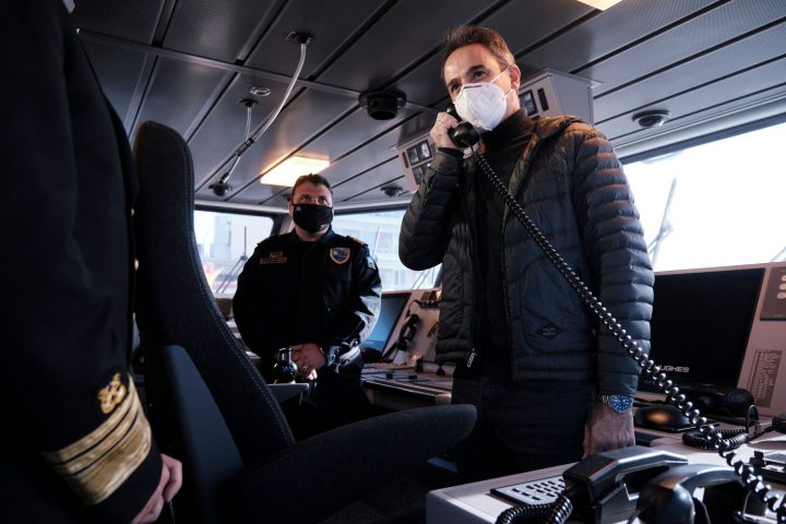 Και βέβαια στο πολύ σημαντικό έργο, στο Εθνικό Σύστημα Ολοκληρωμένης Επιτήρησης των θαλάσσιων συνόρων μας, το οποίο θα μας δώσει τη δυνατότητα να έχουμε 24 ώρες το 24ωρο, 365 μέρες το χρόνο, μία πλήρη εικόνα του τι συμβαίνει στα θαλάσσια σύνορα μας, ώστε να μπορούμε να παρεμβαίνουμε γρήγορα και αποτελεσματικά και να κάνετε καλύτερα τη δουλειά σας. Αρχηγέ και πάλι ευχαριστούμε πάρα πολύ», είπε ο Κυριάκος Μητσοτάκης.