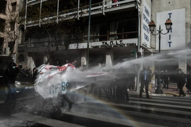 Σύμφωνα με την Αστυνομία, περίπου 200 άτομα επιχείρησαν να πραγματοποιήσουν συγκέντρωση στην πλατεία Συντάγματος στις 12 το μεσημέρι, αλλά οι ισχυρές αστυνομικές δυνάμεις τους εμπόδισαν να κλείσουν τους δρόμους και τους απώθησαν.