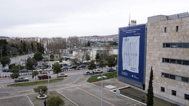 Ένα τεράστιο πανό με αναφορά στα 200 χρόνια από την Ελληνική Επανάσταση και με τη φράση του Ρήγα Φεραίου «όποιος ελεύθερα συλλογάται, συλλογάται καλά…» αναρτήθηκε το πρωί στο δημαρχιακό μέγαρο της Θεσσαλονίκης, παρουσία του δημάρχου Κωνσταντίνου Ζέρβα,