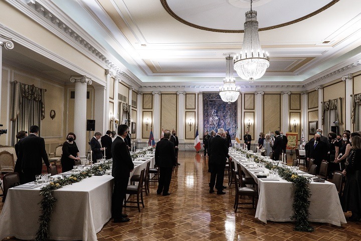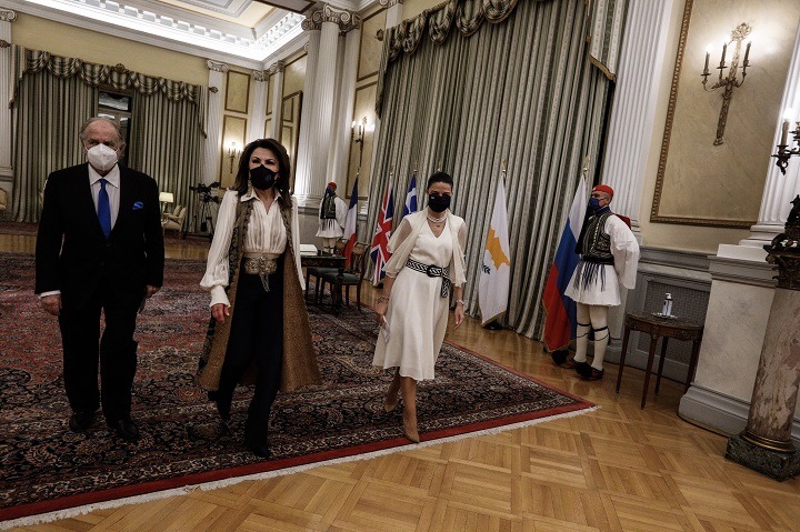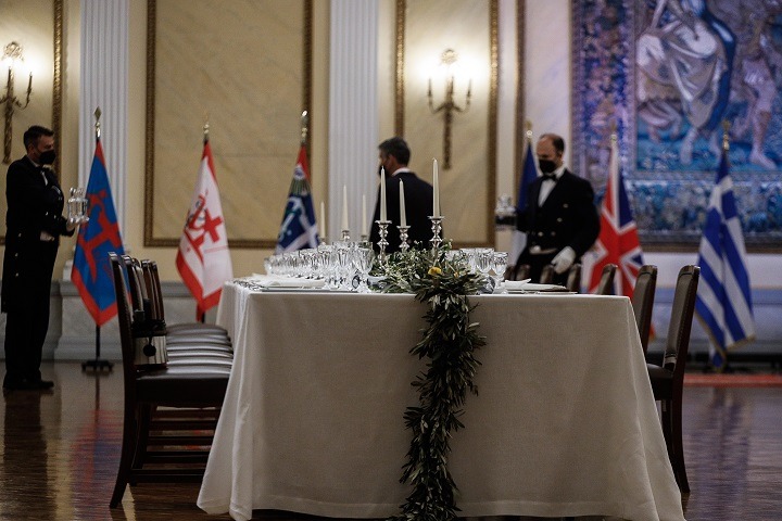Σε εξέλιξη βρίσκεται το επίσημο δείπνο που παραθέτει η Πρόεδρος της Δημοκρατίας στο Προεδρικό Μέγαρο στους υψηλούς προσκεκλημένους ενόψει του εορτασμού της επετείου της 25ης Μαρτίου.