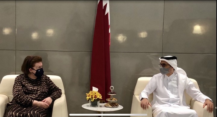 Η yπουργός Πολιτισμού και Αθλητισμού συναντήθηκε επίσης στην Ντόχα με τον Αρχιεπίσκοπο Καττάρων Μακάριο, καθώς και με Έλληνες επιστήμονες και επαγγελματίες και μέλη της ελληνικής κοινότητας που εργάζονται στο Κατάρ.