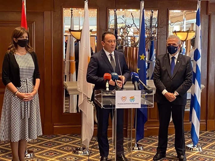 Ο κ. Βλάσης από βήματος της συνέντευξης τύπου, δεν παρέλειψε να καταδικάσει για ακόμη μια φορά τις παράνομες και προκλητικές ενέργειες της Τουρκίας δηλώνοντας την πλήρη στήριξη από την Ελληνική Κυβέρνηση προς την Κυπριακή Δημοκρατία στρέφοντας τα βλέμματα στην επικείμενη άτυπη πενταμερή Διάσκεψη της Γενεύης.