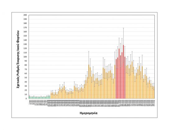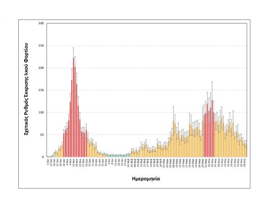 – Μειωμένη κατά 26% σε σχέση με τη μέση τιμή των δύο αμέσως προηγούμενων μετρήσεων, δηλαδή της Δευτέρας 26/04 και της Τρίτης 27/04.