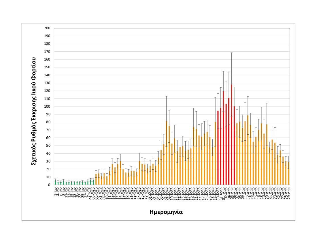 Όπως φαίνεται στα διαγράμματα μετά την πρώτη εβδομάδα του Απριλίου και μέχρι το τέλος του μήνα έχει σταδιακά επέλθει μία σημαντική αποκλιμάκωση της συγκέντρωσης του ιού στα αστικά απόβλητα.
