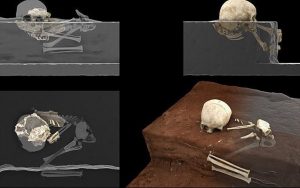 Το σώμα φαίνεται επίσης ότι ήταν τυλιγμένο σε ένα είδος «σάβανου», αλλά οι ειδικοί δεν γνωρίζουν αν ήταν κάποιο δέρμα ζώου ή άλλο είδος φυτικού «υφάσματος».