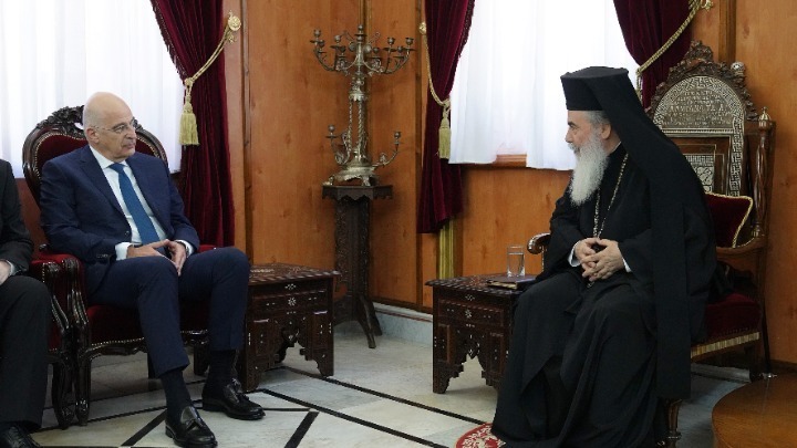 Συνάντηση με τον Πατριάρχη Ιεροσολύμων πραγματοποίησε ο Έλληνας υπουργός Εξωτερικών Νίκος Δένδιας, ο οποίος πραγματοποιεί επίσκεψη στο Ισραήλ και τα Παλαιστινιακά Eδάφη.