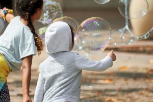 Για να καταλάβουν τα μικρά παιδιά τι σημαίνει 1,5-2 μέτρα απόσταση, μπορούν να κάνουν τις σχετικές μετρήσεις στο μάθημα των μαθηματικών. Στα διαλείμματα, μπορούν να παίξουν «Είμαι μέσα σε μια φούσκα», όπου στέκονται, ανοίγουν διάπλατα τα χέρια τους και φαντάζονται ότι όλη η περίμετρος είναι μια τεράστια φούσκα. Στόχος, να κινηθούν χωρίς τα χέρια κάποιου συμμαθητή να σπάσουν τη φούσκα τους.