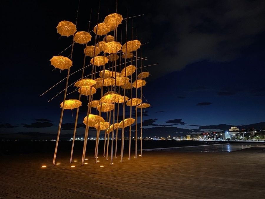 Πορτοκαλί φωτίστηκαν απόψε οι εμβληματικές «Ομπρέλες» του Ζογγολόπουλου, στη νέα παραλία της Θεσσαλονίκης, με πρωτοβουλία του Δήμου, στο πλαίσιο εκστρατείας ευαισθητοποίησης για το μελάνωμα και τον καρκίνο του δέρματος.