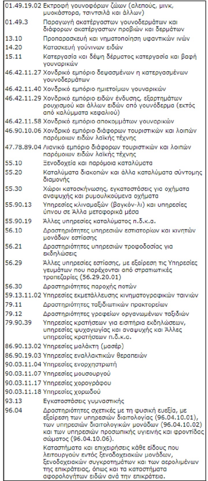 ΠΙΝΑΚΑΣ ΚΩΔΙΚΩΝ ΑΡΙΘΜΩΝ ΔΡΑΣΤΗΡΙΟΤΗΤΑΣ ΠΟΥ ΠΛΗΤΤΟΝΤΑΙ ΣΕ ΟΛΗ ΤΗΝ ΕΠΙΚΡΑΤΕΙΑ