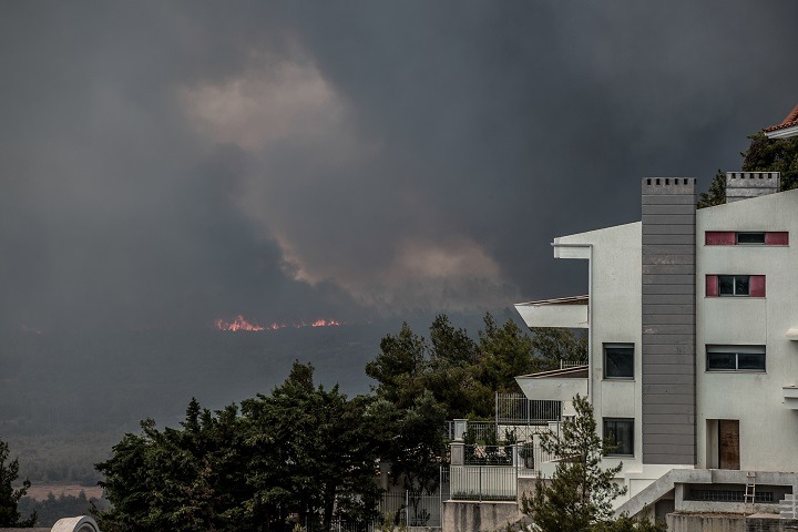 Μήνυμα του 112: Αν βρίσκεστε σε περιοχή Μορτερού βόρεια κόμβου Ερυθραίας Αττικής, κλείστε καμινάδες, παράθυρα, πόρτες για να μην διεισδύσουν οι καύτρες στο εσωτερικό σπιτιού