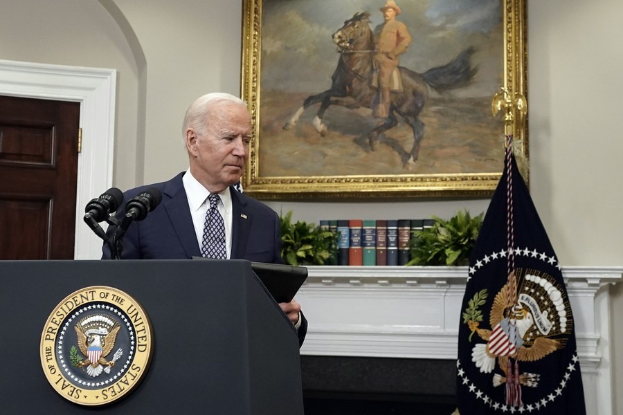 Την Τρίτη, η ομιλία του καθυστέρησε περίπου 5 ώρες την ώρα που ο κόσμος περίμενε να μάθει αν θα υποχωρήσει στα διεθνή αιτήματα υπέρ της παράτασης της διορίας που είχε δοθεί για τις 31 Αυγούστου για την αποχώρηση των αμερικανικών δυνάμεων από το Αφγανιστάν — και εκ των πραγμάτων και για την απομάκρυνση των ξένων και των Αφγανών που απειλούνται με αντίποινα από την πλευρά των Ταλιμπάν. Ο Μπάιντεν επιβεβαίωσε εν τέλει την τήρηση της προθεσμίας.