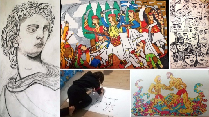 «Μού αρέσει πολύ η ζωγραφική», σημειώνει ο 11χρονος Χρήστος Κουλέντζας και προσθέτει: «Ζωγραφίζω από τότε που ήμουν τεσσάρων ετών και μέχρι σήμερα έκανα πολλά σχεδία και ζωγραφιές. Αυτή την περίοδο, όμως, μού αρέσει να ζωγραφίζω μηχανές και αυτοκίνητα, αλλά στο δωμάτιό μου έχω και ζωγραφιές από τη μυθολογία με τον Ηρακλή και άλλους ήρωες».