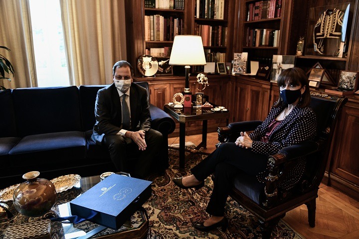 Η Πρόεδρος της Δημοκρατίας Κατερίνα Σακελλαροπούλου συναντήθηκε σήμερα με τον υπουργό Αγροτικής Ανάπτυξης και Τροφίμων Σπήλιο Λιβανό, ο οποίος την ενημέρωσε για θέματα της αρμοδιότητάς του. Ειδικότερα, ο κ. Λιβανός αναφέρθηκε στο στρατηγικό σχέδιο της νέας Κοινής Αγροτικής Πολιτικής και ενημέρωσε την κυρία Σακελλαροπούλου για τις προτεραιότητες της εθνικής πολιτικής για την αγροτική οικονομία. Παράλληλα, προσέφερε στην Πρόεδρο της Δημοκρατίας προϊόντα Προστατευόμενης Ονομασίας Προέλευσης από οκτώ περιφέρειες της Ελλάδας.