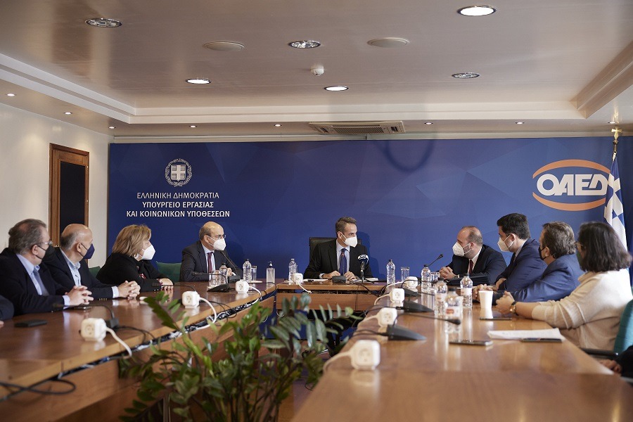 Η παρουσίαση των προγραμμάτων του ΟΑΕΔ για το 2022, μέσω των οποίων θα προσφερθούν 86.000 νέες θέσεις εργασίας, ήταν το αντικείμενο της σύσκεψης που έγινε το πρωί στα κεντρικά γραφεία του Οργανισμού παρουσία του Πρωθυπουργού Κυριάκου Μητσοτάκη, ο οποίος ενημερώθηκε επίσης από τον Υπουργό Εργασίας και Κοινωνικών Υποθέσεων Κωστή Χατζηδάκη και τον Διοικητή του ΟΑΕΔ, Σπύρο Πρωτοψάλτη, για τα αποτελέσματα των προγραμμάτων τόνωσης της απασχόλησης την τελευταία διετία.