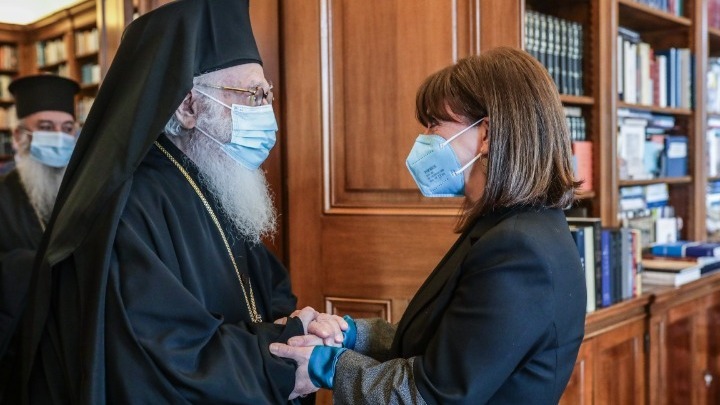Η Πρόεδρος της Δημοκρατίας Κατερίνα Σακελλαροπούλου συναντήθηκε σήμερα με τον Μακαριώτατο Αρχιεπίσκοπο Τιράνων, Δυρραχίου και πάσης Αλβανίας Αναστάσιο, ο οποίος την ενημέρωσε για τις δραστηριότητες της Ορθόδοξης Εκκλησίας της Αλβανίας.