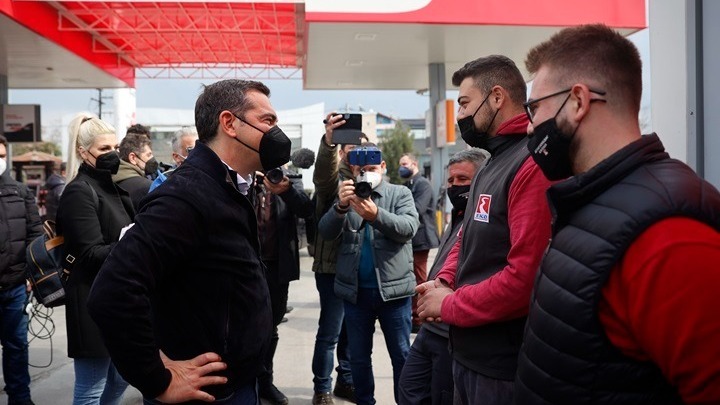 Νωρίτερα ο κ. Τσίπρας επισκέφθηκε πρατήριο υγρών καυσίμων στην περιοχή της Καλαμαριάς και συζήτησε για το θέμα της εκτόξευσης των τιμών και τα προβλήματα που δημιουργούνται με τον πρόεδρο της Πανελλήνιας Ομοσπονδίας Πρατηριούχων Εμπόρων Καυσίμων (ΠΟΠΕΚ) και της Ένωσης Βενζινοπωλών Θεσσαλονίκης, Θέμη Κιουρτζή και τον αντιπρόεδρο της Ένωσης, Χρήστο Σταυράκη.