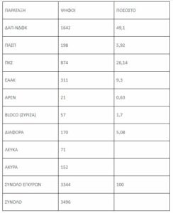 Αναλυτικά τα αποτελέσματα στο 17,68% των Φοιτητικών Συλλόγων: