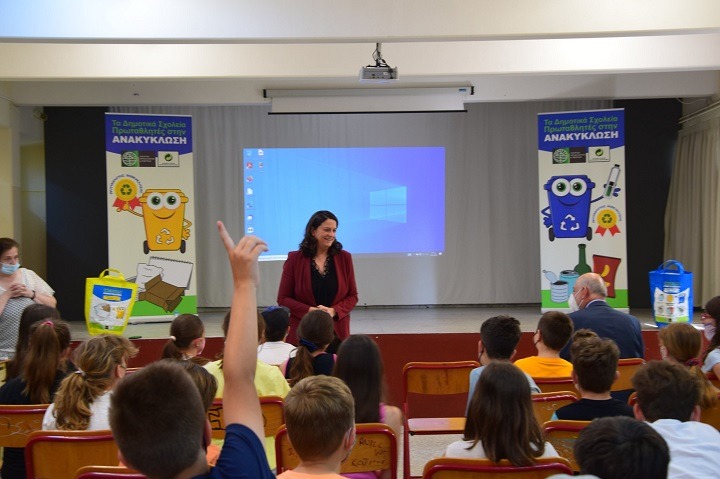 Στο 3ο Δημοτικό Σχολείο Βριλισσίων, ανάμεσα σε μικρούς μαθητές και μαθήτριες, βρέθηκε η υπουργός Παιδείας Νίκη Κεραμέως, την Τετάρτη, προκειμένου να συμμετέχει και να προωθήσει το πρόγραμμα εκπαίδευσης ανακύκλωσης «Τα δημοτικά σχολεία πρωταθλητές στην ανακύκλωση».