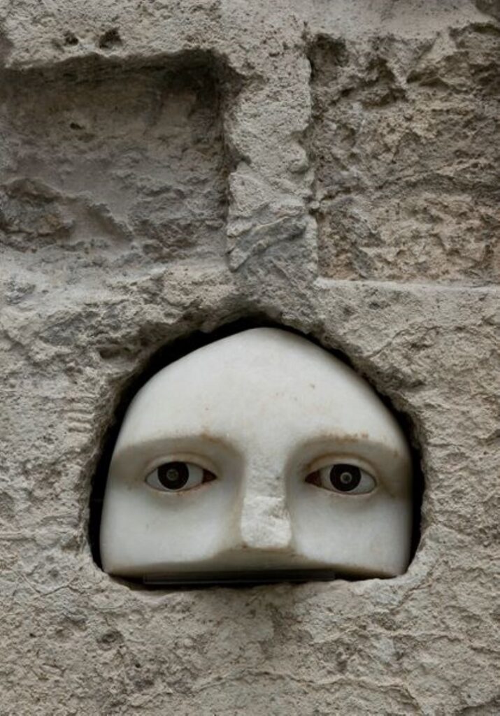-Τμήμα μαρμάρινου προσώπου τοποθετημένο σε κόγχη πώρινου πεσσού. Βρέθηκε μαζί με τον πεσσό το 1876 στη νότια κλιτύ (πλαγιά) της Ακρόπολης, στην περιοχή του ιερού του Ασκληπιού.