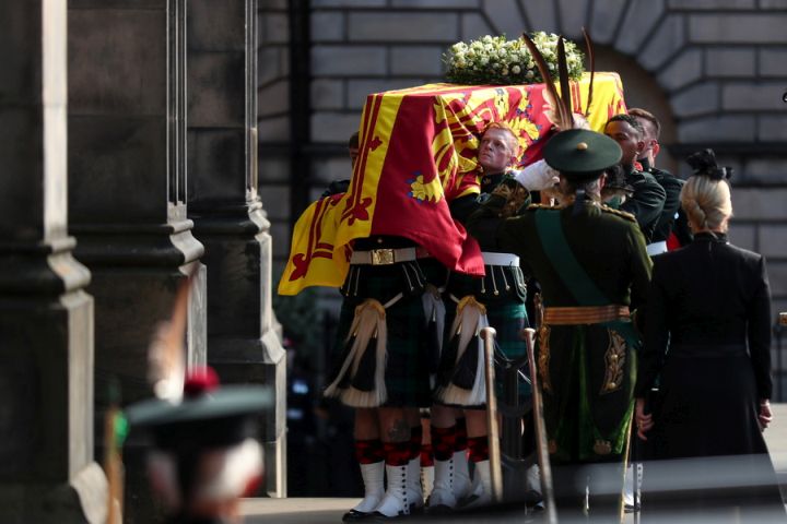 Το κλειστό φέρετρο, σκεπασμένο με το σκωτσέζικο βασιλικό λάβαρο, θα παραμείνει για 24 ώρες στο Εδιμβούργο και αύριο το βράδυ θα μεταφερθεί αεροπορικώς στο Λονδίνο. Από το βράδυ της Τετάρτης, θα εκτεθεί για λαϊκό προσκύνημα στο Γουεστμίνστερ.