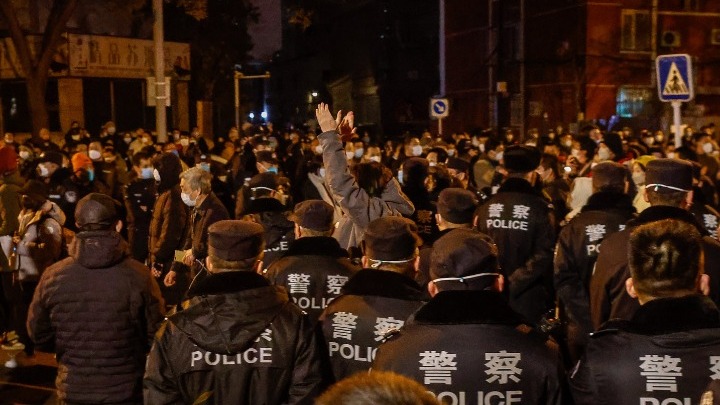 Ένας ανταποκριτής του εθνικού τηλεοπτικού σταθμού της Ελβετίας RTS προσεγγίστηκε από την αστυνομία την ώρα που έδινε την ανταπόκρισή του σε απευθείας σύνδεση για τις διαδηλώσεις στην Κίνα που έχουν ξεσπάσει κατά της αυστηρής πολιτικής που ακολουθεί η χώρα για την ανάσχεση της COVID.