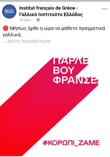 Κορυφαία η διαφήμιση του Γαλλικού Ινστιτούτου για τα μαθήματα γαλλικών που γίνονται εκεί, πήρε χιλιάδες συγχαρητήρια. Γρήγορα αντανακλαστικά, γρήγορη αποδοχή του κοινού. Ανώτερο επίπεδο!