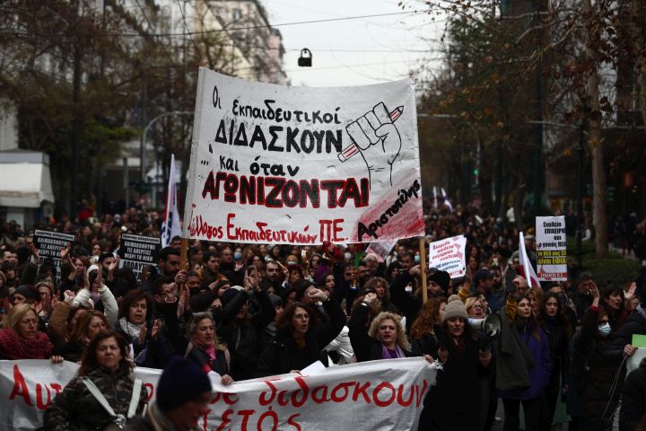 Με σκοπό τη συνέχιση των κινητοποιήσεων ενάντια στην ατομική αξιολόγηση, ολοκληρώθηκε η πορεία των εκπαιδευτικών στο κέντρο της Αθήνας.
