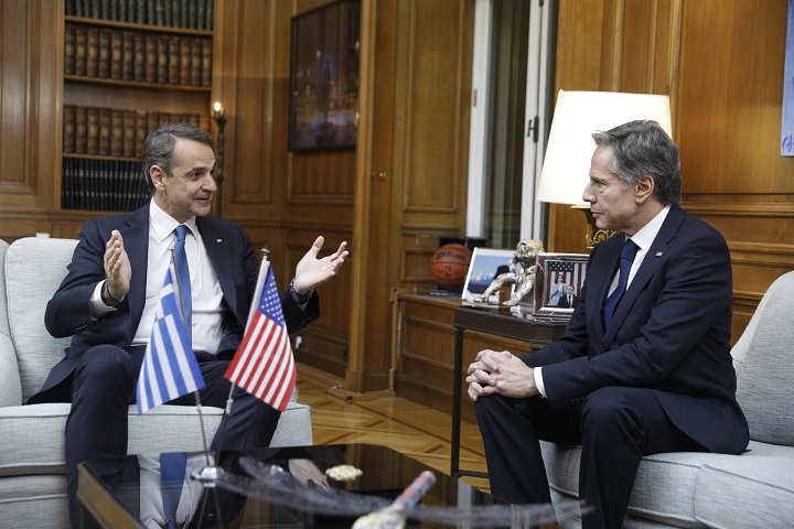 Ο πρωθυπουργός Κυριάκος Μητσοτάκης είχε σήμερα κατ’ ιδίαν συνάντηση και δείπνο εργασίας με τον υπουργό Εξωτερικών των Ηνωμένων Πολιτειών, Άντονι Μπλίνκεν, στο Μέγαρο Μαξίμου.