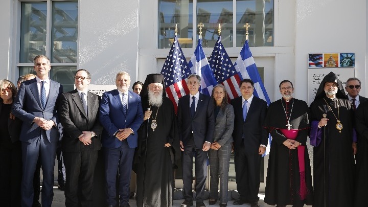 Τα εγκαίνια της επέκτασης του κτιρίου της αμερικανικής πρεσβείας στην Αθήνα, τη βόρεια πτέρυγα πλέον, εγκαινίασε ο υπουργός Εξωτερικών των ΗΠΑ, Άντονι Μπλίνκεν. Κόβοντας την κορδέλα των εγκαινίων στην είσοδο της νέας πτέρυγας της πρεσβείας, μαζί με τον πρεσβευτή των ΗΠΑ στην Ελλάδα Τζορτζ Τσούνη, παρουσία του Αρχιεπισκόπου Ιερώνυμου, του περιφερειάρχη Αττικής Γιώργου Πατούλη και του δημάρχου Αθηναίων Κώστα Μπακογιάννη, ο Άντονι Μπλίνκεν είπε πως είναι μια συμβολική και μια πρακτική στιγμή για την αμερικανική διπλωματική αποστολή στην Αθήνα. Ευχαρίστησε την ελληνική κυβέρνηση και τον φίλο του και αξιόλογο πρέσβη, όπως τον αποκάλεσε, Τζορτζ Τσούνη. «Δεν θα μπορούσαμε να έχουμε καλύτερο εκπρόσωπο των ΗΠΑ στην Ελλάδα» συμπλήρωσε ο επικεφαλής του Στέιτ Ντιπάρτμεντ.